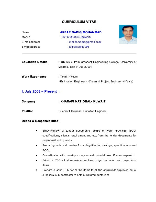 CV - Electrical Estimation Engineer
