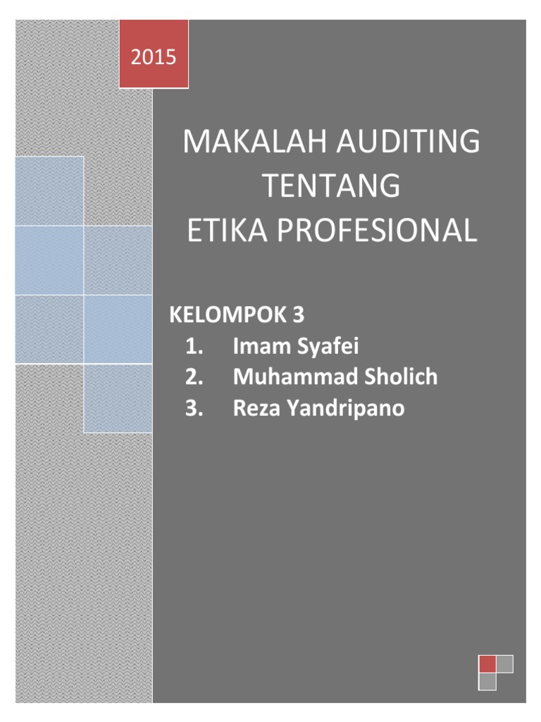 Resume Etika Profesional Audit. Sebagai suatu subyek, etika akan berkaitan dengan konsep yang dimiliki oleh individu ataupun kelompok untuk menilai apakah tindakan-tindakan yang telah dikerjakannya itu salah atau benar, buruk atau baik. Etika profesional bagi praktik akuntan di Indonesia ditetapkan oleh Ikatan Akuntan Indonesia Kode Etik Akuntan Indonesia mempunyai struktur seperti kode etik AICPA yang meliputi prinsip etika, aturan etika dan interpretasi aturan etika yang diikuti dengan tanya jawab dalam kaitannya dengan interpretasi aturan etika.