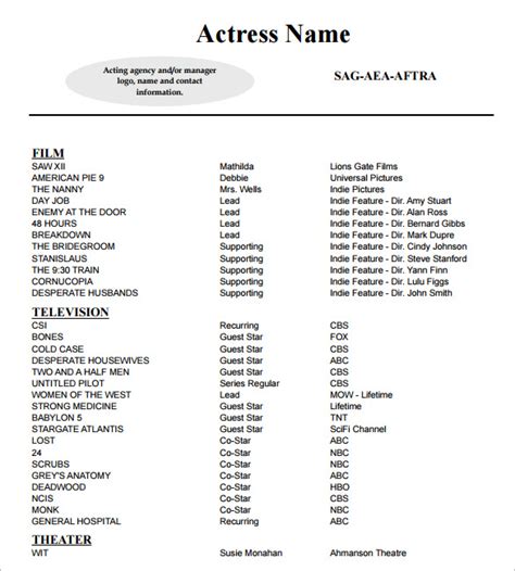 Acting Resume Template - Daily Actor