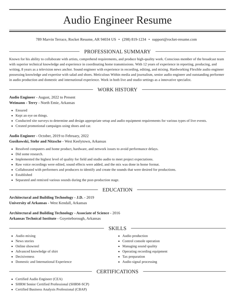 Audio Engineer Resumes | Rocket Resume