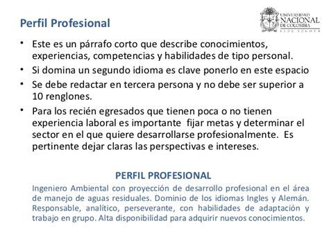 Modelo De Resumen Profesional. Cada vez son más los demandantes de empleo que deciden incluir su perfil profesional en el Curriculum Vitae. Consejos para hacer un Curriculum Vitae y más tips para desarrollar tu carrera profesional. ¡Elige ya el ejemplo de CV que más te gusta!