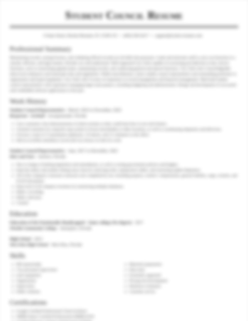 Student Representative Resume. Write the perfect resume with help from our resume examples for students and professionals. For students with little or no relevant work experience it can be difficult trying to get a job.